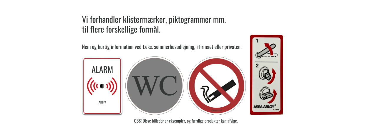 Vi råder over et bredt udvalg af skilte i mange forskellige størrelser, typer og farver.